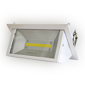 Светильник поворотный, встраиваемый. Для направленной подсветки витрин, товаров. Поставляется в комплекте с драйвером. Корпус из оцинкованной листовой стали, арматура - прямоугольная , поворотная , окрашена в белый цвет, зеркальный алюминиевый отражатель, силикатное термостойкое стекло.