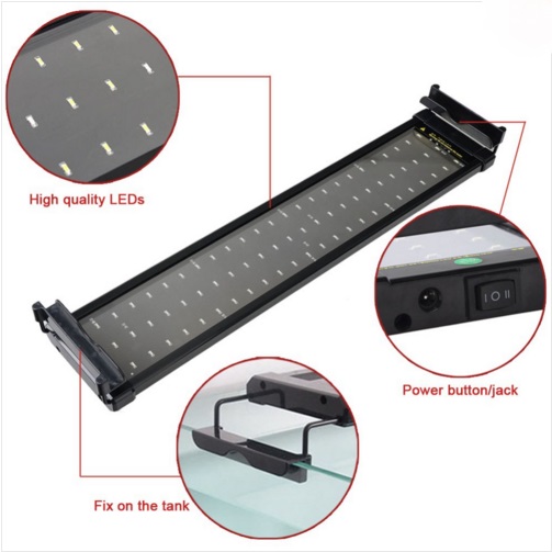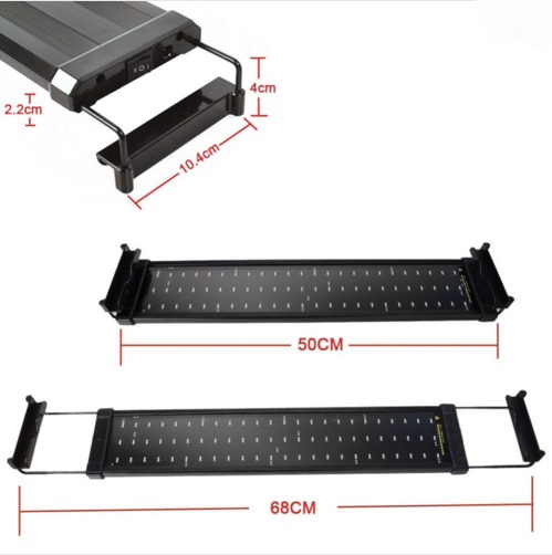 Светодиодный, герметичный, с раздвижными креплениями на размер аквариума 50-68см. Бело-синий спктр свечения.