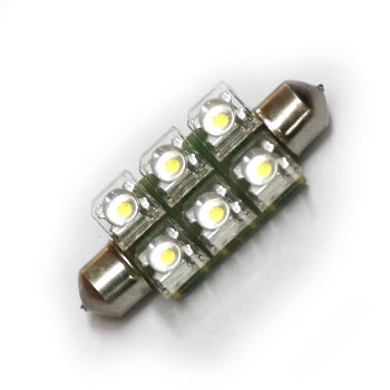 - Автолампа T10x42mm White "Пиранья" 6LED (12V, SV8.5)